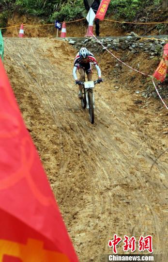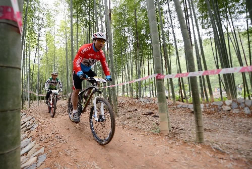 2013年4月21日,“首届井冈山国际山地自行车赛道越野邀请赛”在江西井冈山黄坳乡国际山地自行车赛道举行。图为比赛现场。