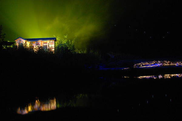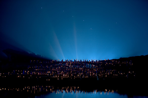 第二章《灯》:这是一个优美、平缓而又孕育着力量的段落。用主题音乐《八角楼的灯光》反复演绎和主题道具上千盏马灯来带动场景的变化。您可以看到在明亮的北斗星下,一千多盏明灯在山野间闪烁流动。